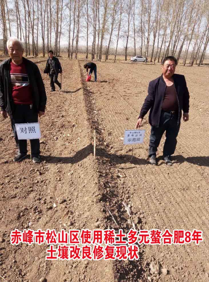 稀土多元素螯合技术产品与大、中、微量元素、氮、磷、钾等不同用量配比,所形成的复混(合)肥填补并完善了目前全国所有品牌化肥作用的短板和空白,不但实现作物全生育期对各种养分的供应吸收,而且表现出抗倒、抗旱、抗寒、抗病、品质优、产量高。